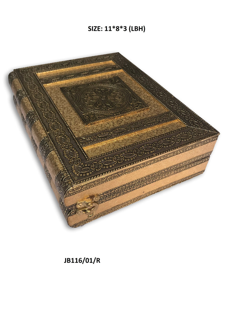 Oxidised Jewellery Box minakari Box. you can use it as a jewelry box. Jewellery boxes are beautiful receptacles for your jewels and trinkets. This jewellery box is made of wood covered with high quality metal foil having good quality velvet inside. It has 5 boxes for earrings n chains and 1 row for bangles. attractive & useful look for lock. Jewellery box helps you develop the habit of taking care of your jewellery properly. This individually engraved box is in fact often collected as decorative box. Using a jewellery box helps - keep jewellery safe so it cannot be lost or inadvertently damaged, keep jewellery in one location so pieces of sets are not separated, keep jewellery clean by keeping it away from daily dust, dirt, and grime. It can be a precious gift item too. This oxidized finish box is ideal for gift at weddings.